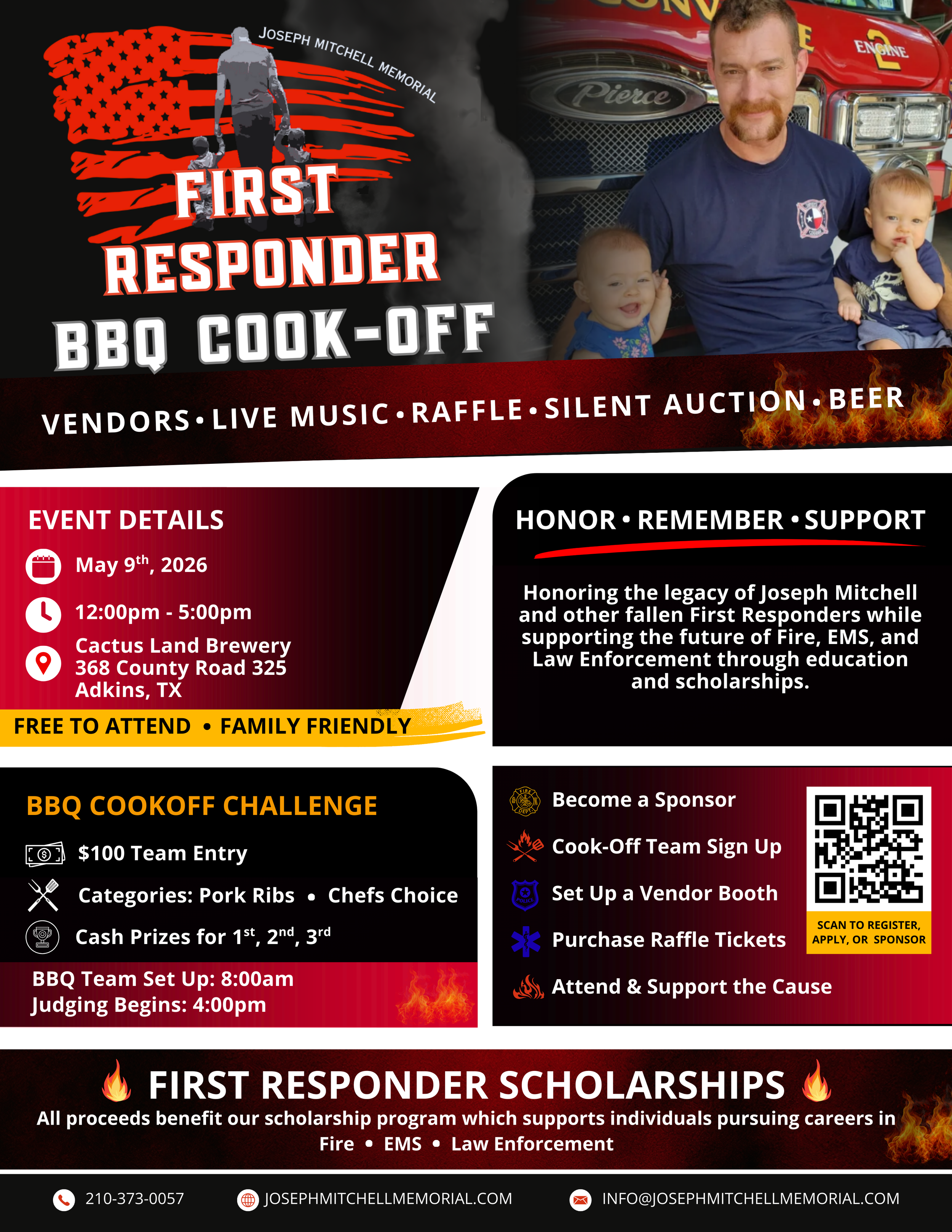 Get ready for a full day of great food, live music, and community fun! Join us on Saturday, May 9th, 2026, at Cactus Land Brewery for an unforgettable event featuring local vendors, a lively raffle, a silent auction, and of course, cold beer. Bring your friends and family and enjoy a day of celebration, community, and our First Responder BBQ Cook-Off!